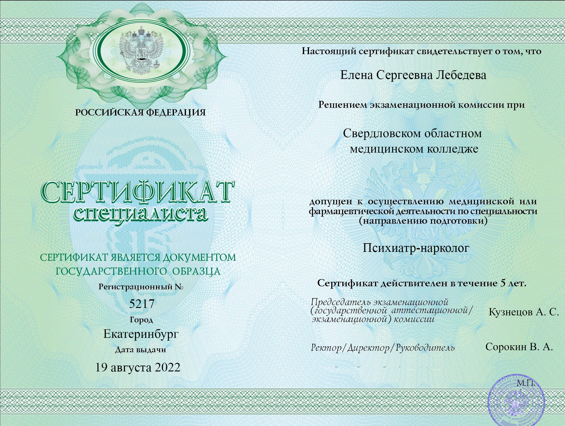 Елена Сергеевна Лебедева врач нарколог клиники доктора Стукаловой в Кумылженской